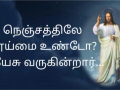 Lyrics in Tamil நெஞ்சத்திலே தூய்மையுண்டோ இயேசு வருகிறார் நொறுங்குண்ட நெஞ்சத்தையே இயேசு அழைக்கிறார் வருந்தி சுமக்கும் பாவம் உன்னைக் கொடிய இருளில் சேர்க்கும் செய்த பாவம் இனி போதும் அவர் பாதம் வந்து சேரும் ( 2 ) —… Read more »